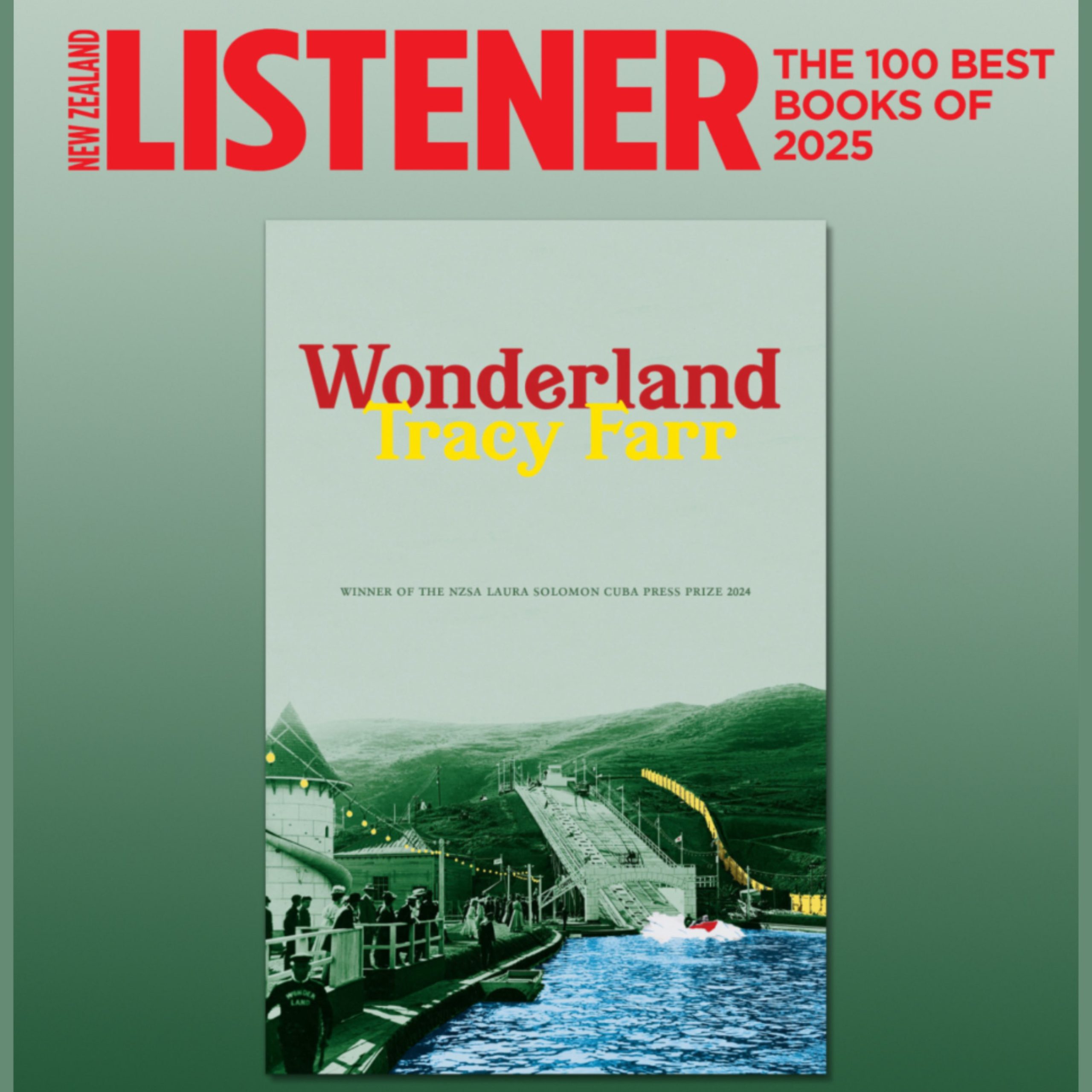 Wonderland was awarded the 2024 NZSA Laura Solomon Cuba Press Prize, named as one of NZ Listener‘s 100 best Books of 2025, and is longlisted for the Jann Medlicott Acorn Prize for Fiction in the 2026 Ockham New Zealand Book Awards.